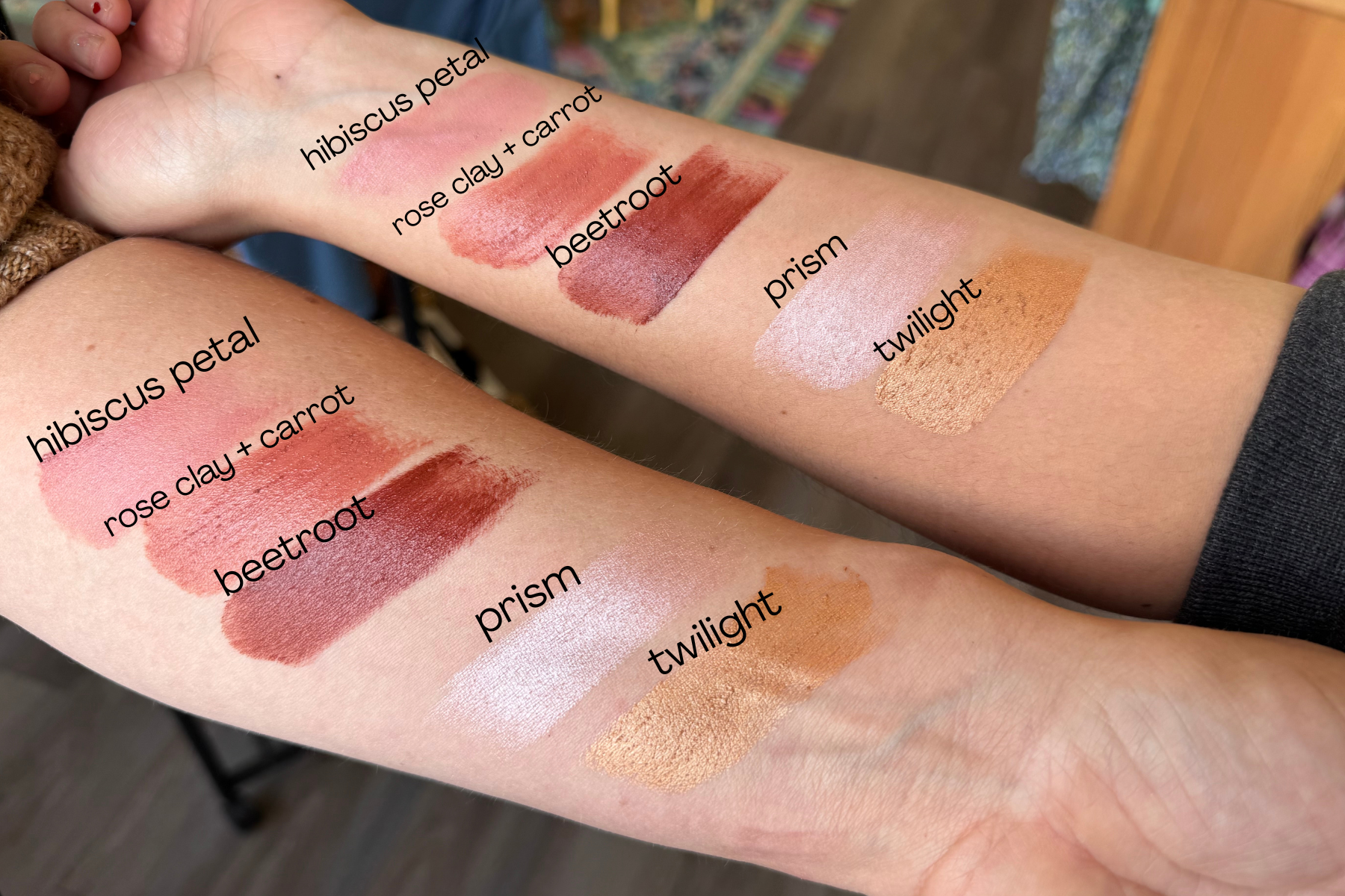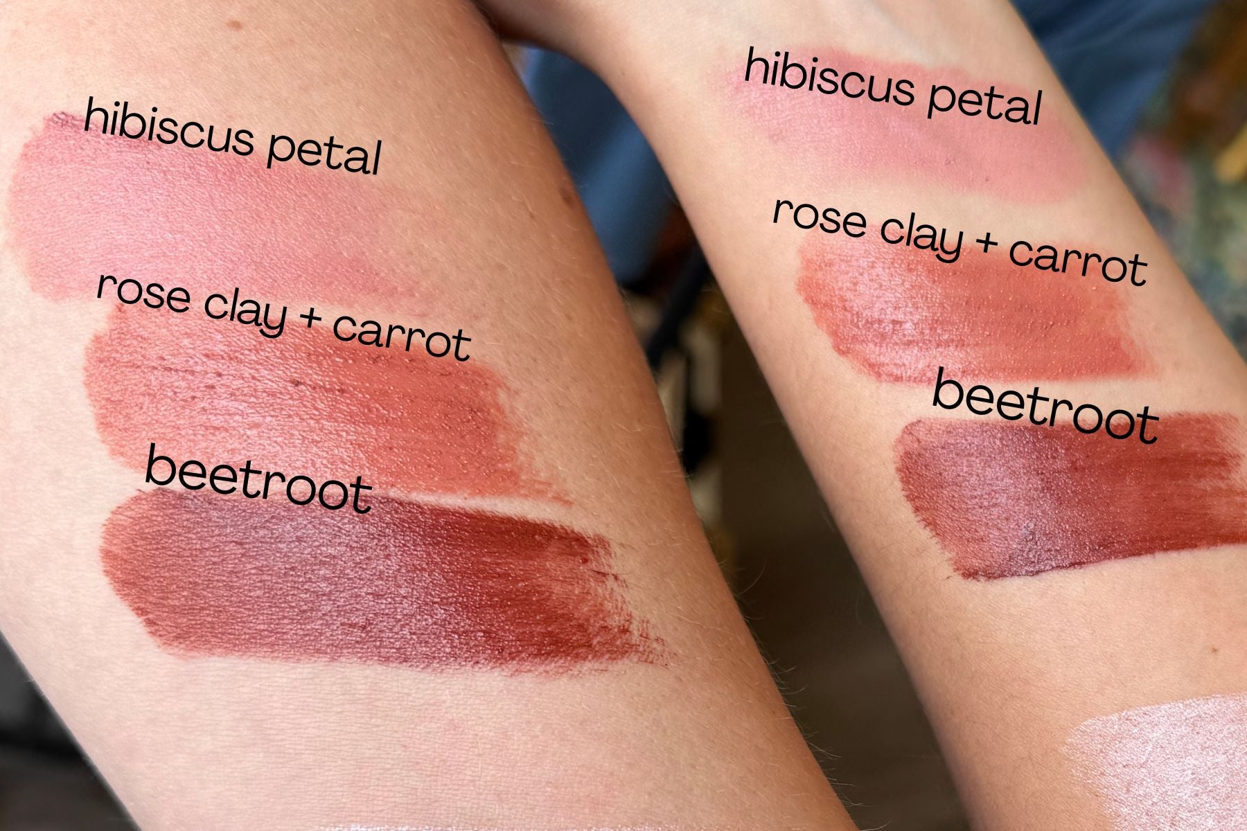 Beetroot infused rice bran oil, beeswax, iron oxide, frankincense and lemon essential oils